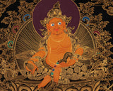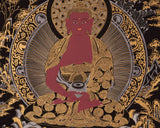 Amitabha Buddha, Dzambala, and Chengrezig Thangka | Original Hand-Painted Red Buddha