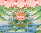 Completed in 2011, this thangka is distinguished by its use of pure gold, enhancing its already exceptional craftsmanship. The artist dedicated months to creating this masterpiece, making it a rare and valuable artifact. Beyond its visual appeal, this thangka represents a deeper connection to the teachings of Manjushri, serving as a powerful aid in spiritual growth and meditation. Its intricate artistry and spiritual significance make it a treasured piece for any devotee seeking to enhance their path to enlightenment.