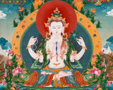 Avalokiteshvara Chengrezig | Traditional Tibetan Thangka | Wall Decors