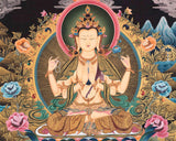 4 Armed Avalokiteshvara Original Handmade Thangka Painting