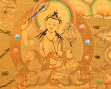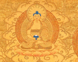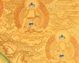 The entire thangka is rendered in full gold, radiating a luminous brilliance that captures the eye and captivates the soul. The opulent use of gold highlights the sacredness of the imagery and adds an ethereal quality to the artwork, elevating it to a realm of divine beauty.