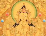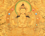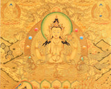 Full 24K Gold Style Avalokitesvara Chengrezig Thangka | Bodhisattva of Compassion