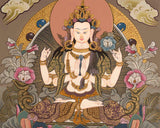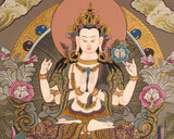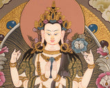 Beautifully Hand-Painted Four-Armed Chengrezig | Avalokiteshvara Thangka Painting