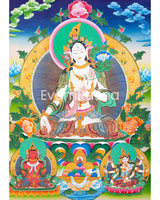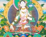 Beautifully Hand-Painted White Tara | Female Bodhisattva Thangka | Mother Goddess |
