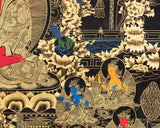 Black and Gold Amitabha Buddha Thangka | Sukhavati Thangka | Meditation Buddha