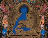 Black and Gold Style Medicine Buddha Thangka | Healing Buddha |