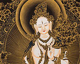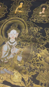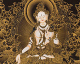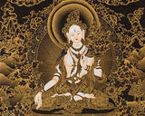 Black and Gold Style White Tara Thangka Art | Original Hand Painted Tibetan Thangka Painting | Meditation And Yoga | Wall Hanging Decoration