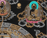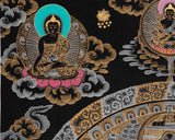 Black Silver and Gold Buddha Mandala | Traditional Tibetan Buddhist Art