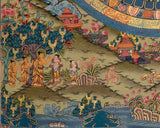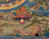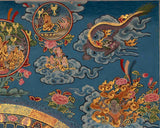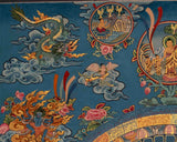 The Blue Medicine Buddha Mandala Thangka is a captivating expression of healing and spiritual serenity. Centered around the Medicine Buddha in serene blue hues, this artwork embodies tranquility and the essence of compassionate healing. The mandala's intricate details and soothing color palette create a visual tapestry that radiates peace and well-being. Elevate your space with the calming presence of the Blue Medicine Buddha Mandala Thangka, inviting a sense of balance and spiritual harmony into your surroundings. Immerse yourself in the profound symbolism and therapeutic energy embodied by this exquisite Thangka.