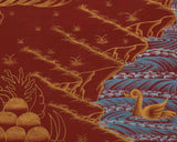 Amitayus is seen in the apparitional buddha form; he is crimson in hue, decked out in jewels and crowns, and he is holding a long-life vase in two hands while meditating. In the Mahayana Buddhist tradition, a Buddha is believed to have three bodies: the form body (nirmanakaya), the apparitional body (sambhogakaya), and the ultimate truth body (sambhogakaya) (dharmakaya).