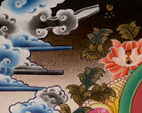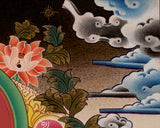 -Rotate thangkas between display and storage on a regular basis, two to four times a year, to reduce the amount of exposure to light. Keep away from sunlight and humidity.