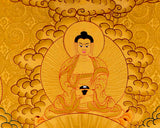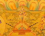 Chengrezig Avalokitesvara Hand-painted 24k Gold Style Thangka- Flanked by Boddhisattvas Vajrapani and Manjushree