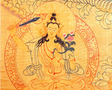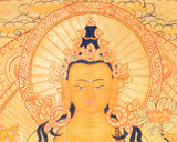 Chengrezig Avalokitesvara Hand-painted 24k Gold Style Thangka Flanked by Vajrapani & Manjushree