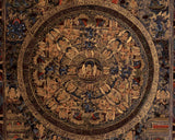 The Mandala represents a symbolic Geometric Diagram in Tantric Buddhism, which visualizes the metaphysical interconnection between microcosm and the universe. Mandalas embody a vast store of Spiritual Energy.