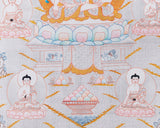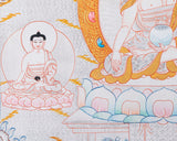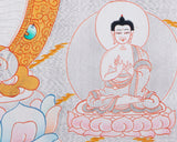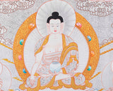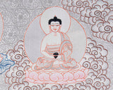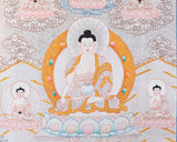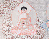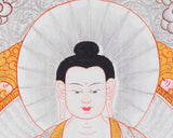 This is a magnificent piece of Buddha Shakyamuni thangka. Masterfully executed in rich, vibrant colors with illuminating details. The painting is fullly painted with natural stone color and 24K gold, which forms a focal point in your praying/meditation room.