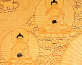 Dzambala Kubera Thangka | Original Hand Painted 24K Gold Style With 5 Buddhas On Top Of His Head