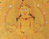 Dzambhala Flanked with 5 Buddhas on Top of His Head | Kubera Thangka Painting |
