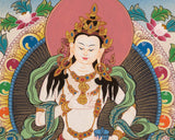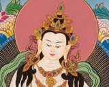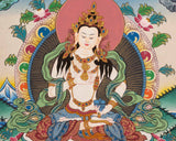 Through regular meditation and reflection with this thangka, you can invoke Vajrasattva's blessings to cleanse negative karma, remove impurities, and cultivate a mind imbued with wisdom and compassion. Displaying this exquisite artwork in your living space, meditation room, or shrine room not only adds a touch of aesthetic beauty but also elevates the ambiance with its sacred symbolism.