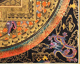 In the Medicine Buddha Mandala Thangka, the Medicine Buddha is at the center, surrounded by a complex arrangement of symbols, and geometric patterns. This mandala serves as a visual aid for meditation and spiritual contemplation, symbolizing the healing and transformative energy of the Medicine Buddha's teachings radiating outward to benefit all beings. It's a visual representation of the interconnectedness of healing, wisdom, and compassion in both the inner and outer worlds.