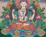 Four Armed Chengrezig Thangka | Original Hand-Painted Bodhisattva Artwork