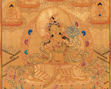 The thangka also includes a number of Buddhist symbols and lucky themes, such as the lotus flower, the wheel of dharma, and the eight auspicious symbols.