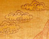 This hand-painted thangka serves not only as a stunning visual centerpiece but also as a powerful tool for meditation and spiritual practice. The thangka's luxurious appearance, coupled with its profound spiritual symbolism, makes it a treasured addition to any meditation space or home altar, infusing the environment with a sense of peace, protection, and sacred beauty.