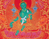 Goddess Green Tara Mandala Thangka | Healing Mandala Thangka | Perfect For Wall Decoration |