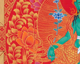 The Mother Green Tara is one of the main deities who deals with us confused and distracted beings, bringing us back to the original state. The color play in the thangka is harmoniously balanced to create soothing pleasure while visualizing it.