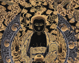 Gold Amitabha Buddha Thangka on Black Canvas for Pure Land Devotion and Meditation