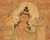 Gold Style Manjushri Thangka with Buddhas & Bodhisattvas | Original Tibetan Thangka