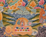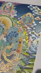 In Vajrayana Buddhism, Green Tara holds a special place of reverence, and followers often seek her blessings for protection and enlightenment. The Five Bodhisattvas who typically accompany her in thangka paintings symbolize various aspects of enlightened qualities and wisdom, creating a powerful visual representation of the path to enlightenment. Together, Green Tara and the Bodhisattvas form a sacred assembly that embodies the virtues of compassion, wisdom, and protection. Displaying or meditating on a thangka of Green Tara with the Five Bodhisattvas serves as a potent reminder of the compassionate guidance available to practitioners, encouraging them to cultivate similar virtues in their own lives.