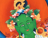Green Tara Bodhisattva Thangka | Cotton Canvas Spiritual Art