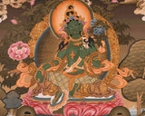 Green Tara Thangka | Buddhist Religious Art | Wall Decors