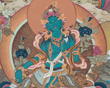 Green Tara Thangka Painting | Beautifully Hand-Painted in Canvas Cotton