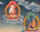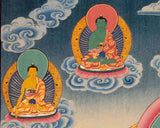 Handpainted Guru Rinpoche Surrounded By Dhyani Buddha Traditional Thangka