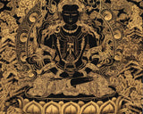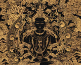Hand-Painted Black and Gold Amitayus Buddha Thanka