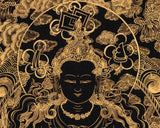 Hand-Painted Black and Gold Amitayus Buddha Thanka | Aparamita Thangka Painting