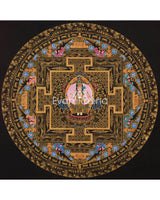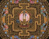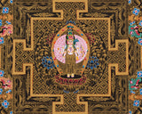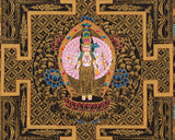 A Chenrezig Mandala is a sacred artistic depiction within Tibetan Buddhism that revolves around the Bodhisattva Chenrezig (Avalokiteshvara). This intricate visual representation places Chenrezig at the center, encircled by an elaborate arrangement of symbols, and geometric patterns. This mandala serves as a focal point for meditation, devotion, and spiritual contemplation, channeling the compassionate and healing energies that Chenrezig embodies. The mandala's design symbolizes the interconnectedness of compassion and wisdom, inspiring practitioners to develop these qualities in their own lives.