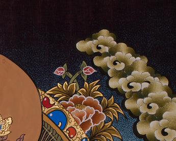 The thangka is painted on cotton canvas using acrylic colors, allowing vibrant, detailed depictions of the deities to come to life. The acrylic colors bring out the rich, glowing hues of the Vajrasattva’s attire and the intricate lotus petals, symbolizing spiritual purity. The genuine 24K gold highlights the halo, ornaments, and jewelry of the deities, infusing the artwork with divine radiance. This combination of materials makes the thangka visually striking and imbues it with spiritual significance, perfect for meditation and spiritual practice.