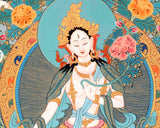 Hand-Painted White Thangka | Buddhist Tara Thangka