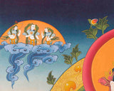 Additionally, our Large Chenrezig Thangka features depictions of Manjushri and Vajrapani at the bottom of the painting. Manjushri, the bodhisattva of wisdom, and Vajrapani, the bodhisattva of power, symbolize the complementary qualities necessary for spiritual transformation. Manjushri's wisdom illuminates the path to enlightenment, while Vajrapani's power provides the strength and determination to overcome obstacles along the journey. Together, these three bodhisattvas represent a holistic approach to spiritual practice, integrating compassion, wisdom, and strength to support practitioners on their path to awakening. Their presence at the bottom of the Thangka serves as a reminder of the interconnectedness of these qualities and their importance in the pursuit of spiritual growth and liberation.