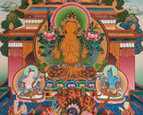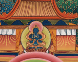 Manjushree Thangka | Manjushri Palace Large Sized Tibetan Thangka Painting For Office, Bedroom & Farmhouse