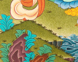 Our Tibetan Thangka is a handmade painting of the Bodhisattva Green Tara, Buddha, and other Bodhisattvas. It is a pleasing wall hanging thangka art that can be used as a piece of décor at your place.