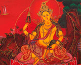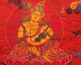 Namtose Thangka with red background | Original Hand Painted Wealth Deity