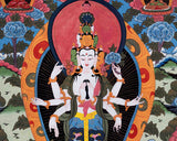 Old Avalokiteshvara Thangka | Followed By Mahakala & Bodhisattvas | Wall Decors