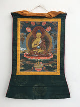 Old Blessing Buddha Thangka Painting with Brocade | Very Rare Tibetan Wall Hanging