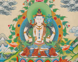 Original 4 Armed Chengrezig Thangka Painting | Handmade in Nepal