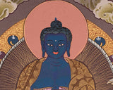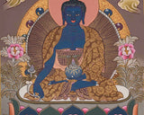 Original Hand-Painted Blue Medicine Buddha Thangka | Bhaisajyaguru Thanka Painting