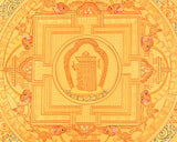 The Thangka's rich gold color and intricate details draw the viewer into a profound meditation experience, serving as a visual guide to inner transformation. Its symmetrical layout and symbolism offer practitioners a way to connect with the divine and explore the depths of their consciousness. The Auspicious Mandala Thangka is not just a work of art; it is a sacred window into the core principles of Buddhism and a source of spiritual inspiration for those who contemplate its intricate details.
