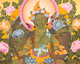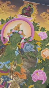 Original Hand Painted Green Tara Buddhist Thangka | Tibetan Dolma Himalayan Art